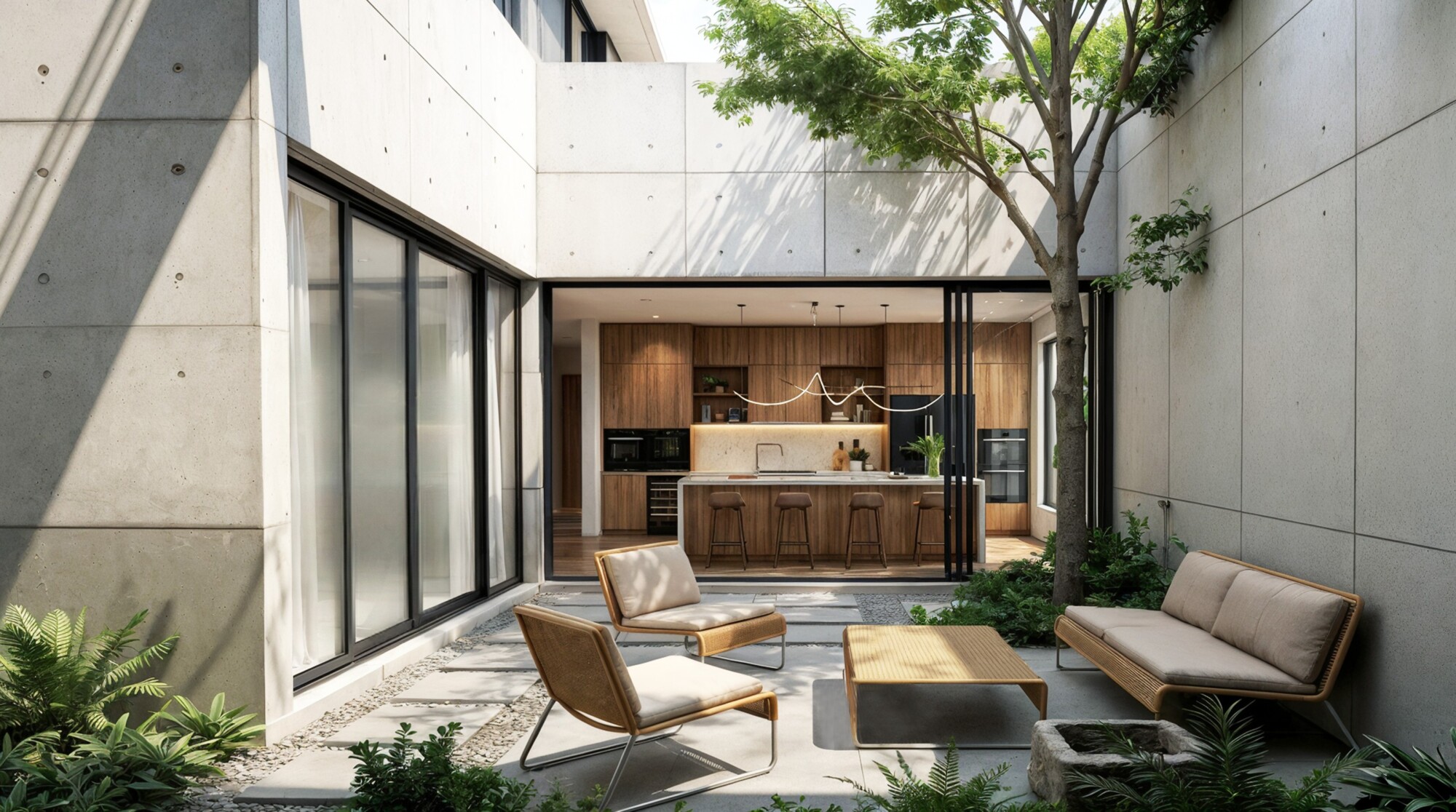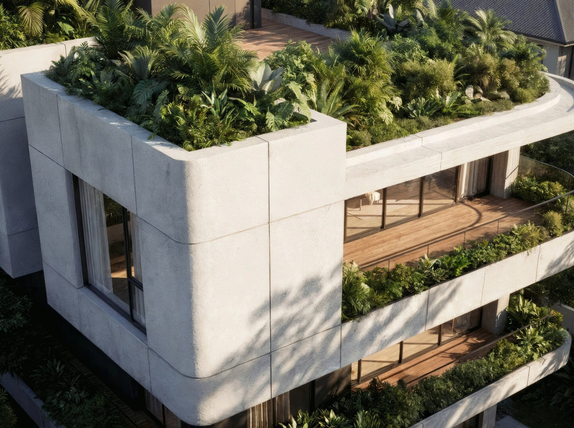 Biệt thự được thiết kế theo ngôn ngữ kiến trúc hiện đại, tối giản nhưng giàu chiều sâu, nổi bật với các khối hình vuông vức, vật liệu bê tông trần kết hợp gỗ và mảng xanh. Không gian mở được tổ chức linh hoạt, tận dụng tối đa ánh sáng tự nhiên và thông gió chéo, giúp ngôi nhà luôn thoáng đãng, tiết kiệm năng lượng. Thẩm mỹ tổng thể hướng đến sự tinh tế, ấm áp và gần gũi với thiên nhiên. Về công năng, các khu vực sinh hoạt, nghỉ ngơi và thư giãn được kết nối mạch lạc, đáp ứng trọn vẹn nhu cầu sống tiện nghi, riêng tư nhưng vẫn gắn kết của gia đình.