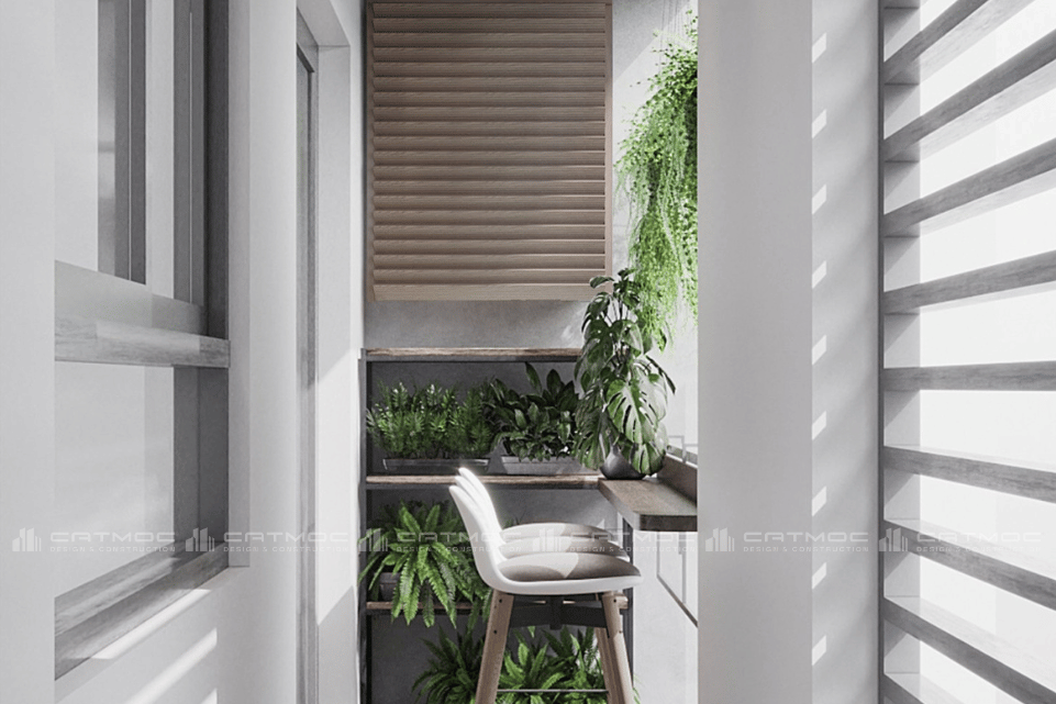 Gương trang trí trên tường mở rộng chiều sâu không gian, kết hợp với ánh sáng tự nhiên từ cửa kính lớn giúp căn hộ luôn thoáng đãng. Nội thất được lựa chọn kỹ lưỡng, vừa đảm bảo công năng sử dụng, vừa mang lại sự hài hòa về thẩm mỹ trong không gian sống.